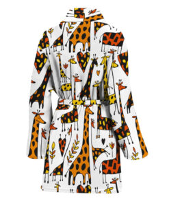 Wrap yourself in luxurious comfort with the elegant Cartoon Giraffe Pattern Print Women’s Bathrobe. This women’s bathrobe is the ultimate blend of style, coziness, and practicality, making it an essential addition to your loungewear collection. Whether you’re starting your morning routine or unwinding after a long day, this robe is designed to keep you comfortable and looking effortlessly chic.